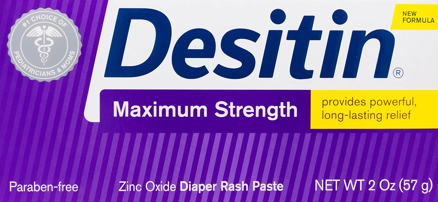 The #1 choice of pediatricians and parents, Desitin Maximum Strength Diaper Rash Paste works to effectively treat and help prevent diaper rash discomfort. Made with 40% maximum-level zinc oxide, this rich, thick diaper rash cream soothes and relieves on contact by sealing out wetness and protecting chafed skin due to diaper rash. Dermatologist- and pediatrician-tested, it is clinically shown to protect baby’s delicate skin for 12 hours. The hypoallergenic formula of this diaper rash treatment is gentle enough for daily use and is free of parabens, phthalates, dyes, and soap.