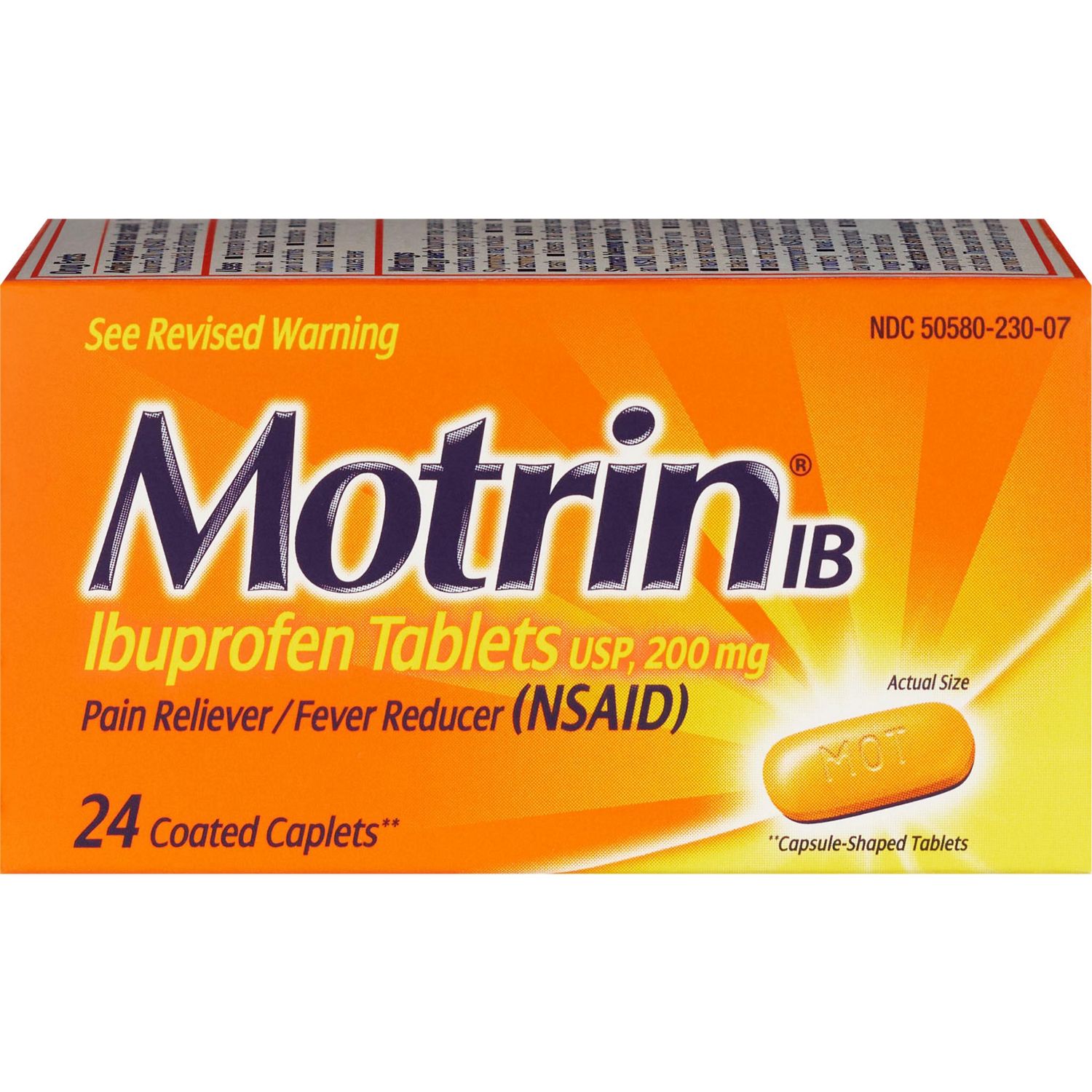 Get fast-acting pain relief from minor aches and pains with Motrin IB 200mg ibuprofen tablets. Safe and effective when used as directed, these ibuprofen tablets work to temporarily reduce fever and relieve minor aches and pains due to the common cold, headache, muscular aches, minor pain of arthritis, toothache, backache, and menstrual cramps. Each Motrin IB tablet contains 200 milligrams of ibuprofen pain relief medicine. Motrin IB pain reliever works fast to stop pain where it starts for powerful, effective relief.