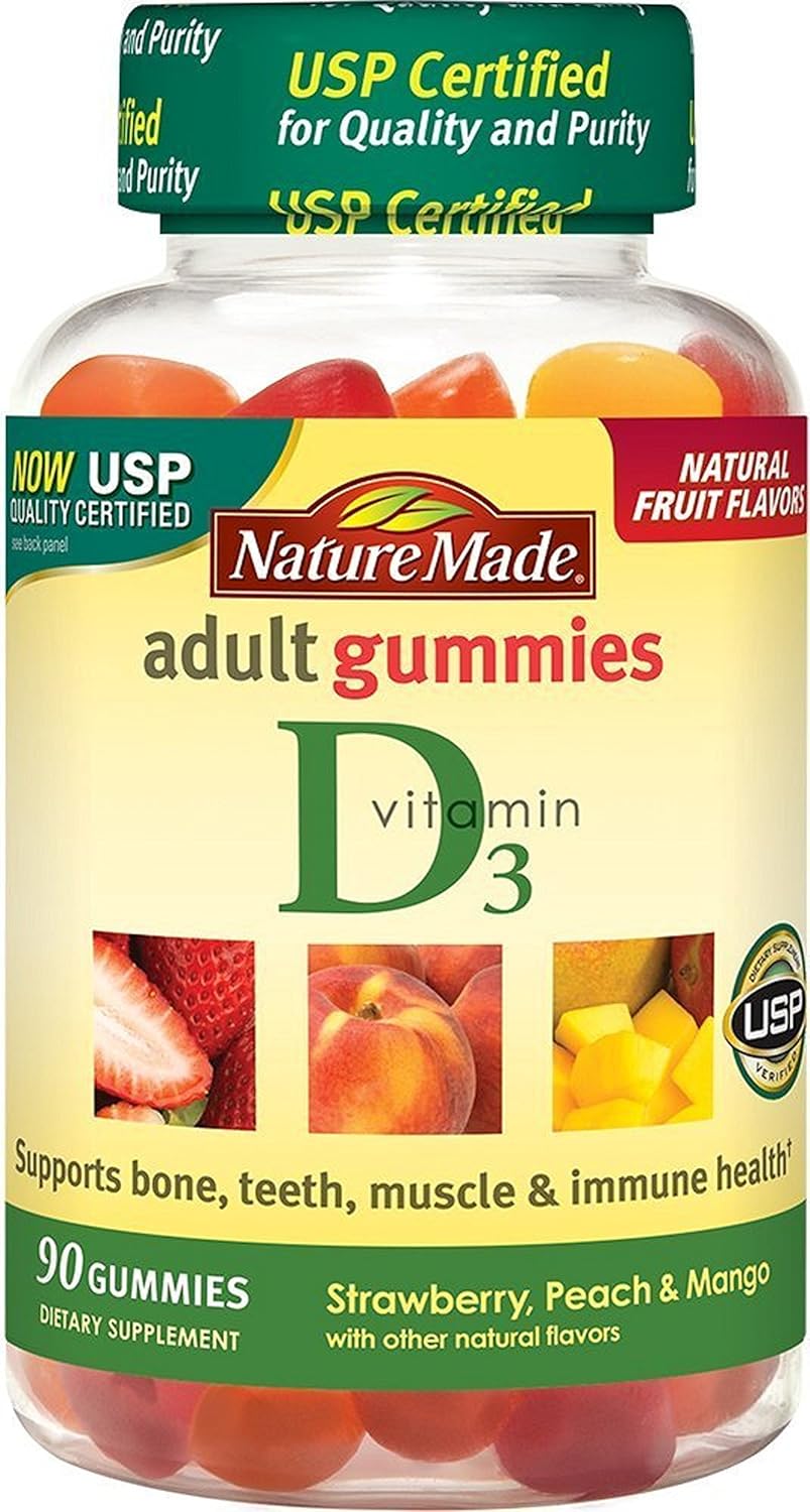 Nature Made Vitamin D3 Gummies per serving offer an easy way to add Vitamin D supplements to your daily routine to support bone, teeth and muscle health. Sourced from high quality ingredients, these Nature Made Vitamin D3 gummies for adults are gluten free dietary supplements with no synthetic dyes, no high fructose corn syrup, and no artificial sweeteners.